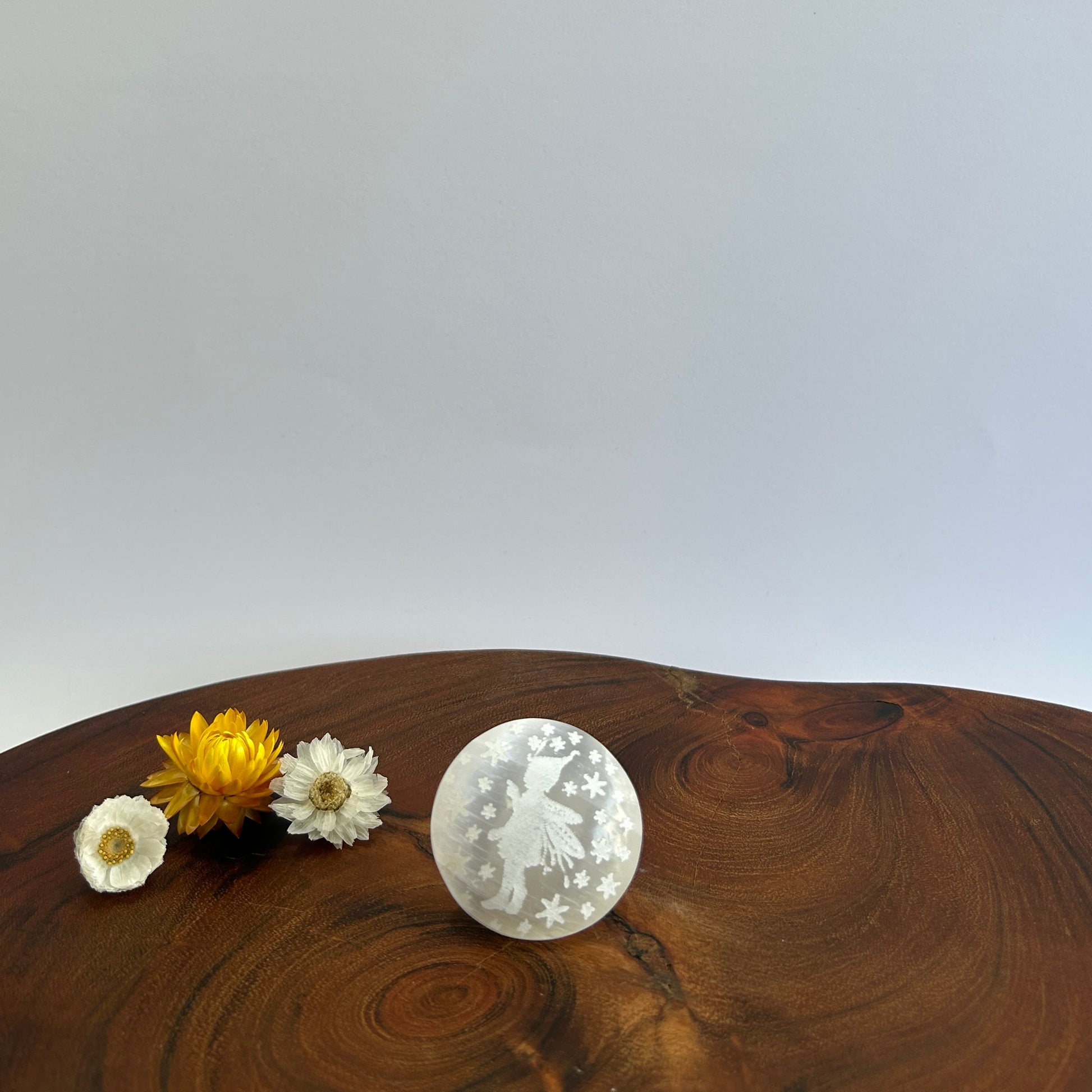 Boost your brain power and focus with this Selenite Palm stone that has a cute fairy & stars etched into the crystal. This unique crystal promotes mental clarity and sharpens concentration while soothing your nerves. Expand your self-awareness and willpower with this powerful tool.