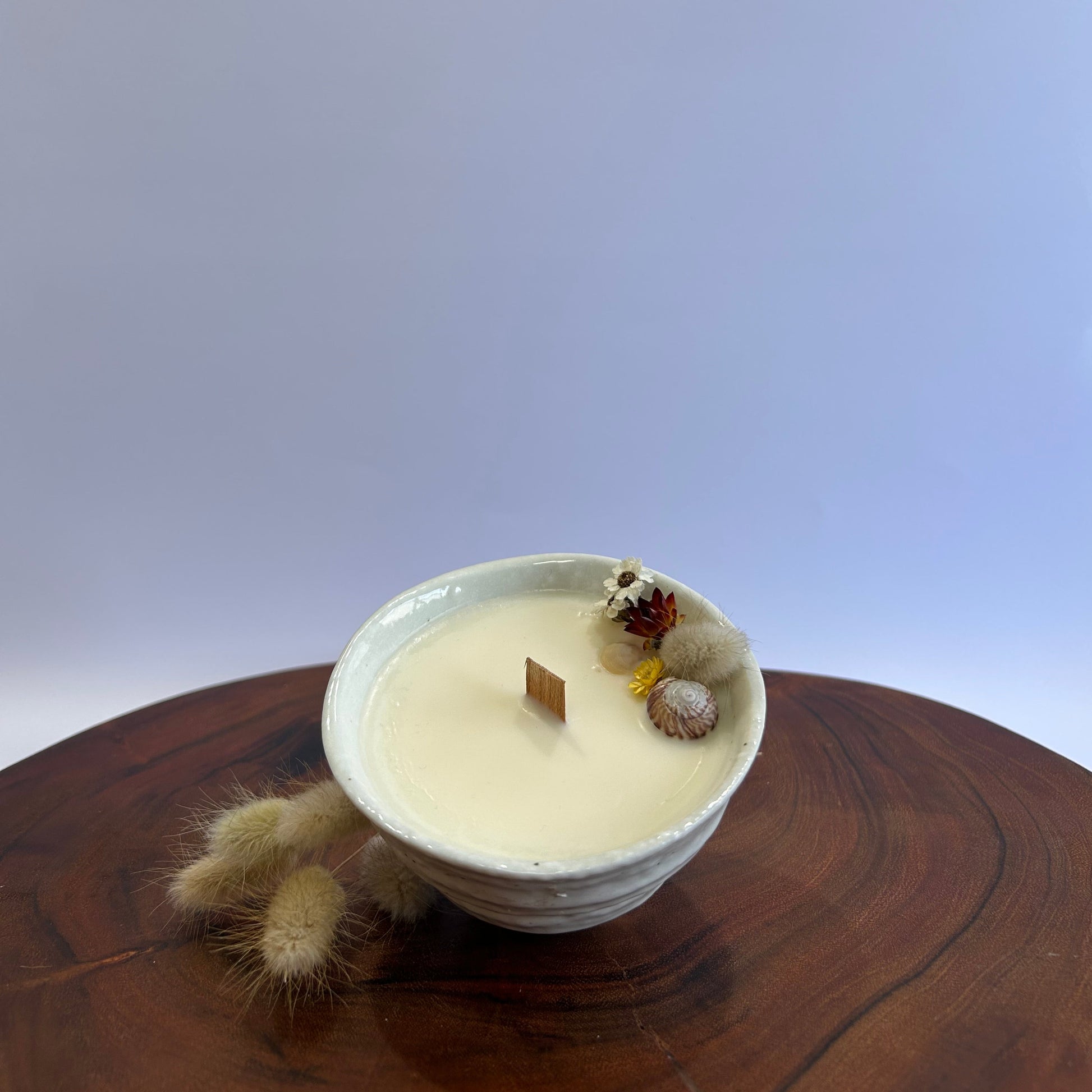 Each candle is a unique work of art with the addition of delightful, dried flowers, shells or sparkling crystals - they are all one of a kind!